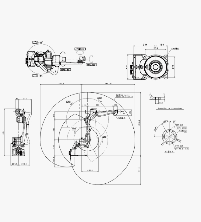 最大行程+150°?-90° 最大速度165°/s